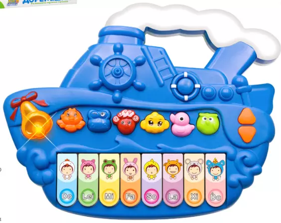 Піаніно FT 0023 ABCDEF звуки тварин, 6 видів, муз. (УКР.), світло, бат., кор., 24-25-5 см.