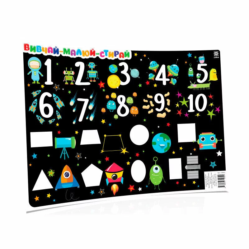 Підкладка навчальна для дівчат /хлопців «Вивчай-малюй-стирай» - простий спосіб запам’ятати літери та цифри, який задіює образний, словесно-логічний, руховий та емоційний види пам'яті. Малюючи, дитина має можливість через рух запам'ятати обриси літер і цифр, які вивчає, крім того, замальовувати фломастерами можна не один раз, а стирати і робити це знову! Звичка дитини все називати в голос задіє словесно-логічну пам'ять, а приємні емоції та образи, які формуються під час споглядання, зроблять процес навчання приємним! Окрім того, підкладка на столі дає можливість дитині постійно мати перед очима абетку чи цифри. Матова ламінація. Розмір 420х297мм