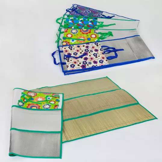 Відмінний варіант для пляжу і відпочинку на море Підстилка С 36530. Килимок представлений в 4-х видах з барвистими принтами. Одна сторона килимка виконана з рисової соломки, а інша покрита сонцезахисної фольгою. Також в підстилці передбачені ручки для зручного транспортування. Підстилка С 36530 - практична і надійна, що обов'язково забезпечить вам комфортний відпочинок.