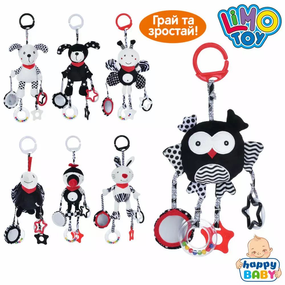 Підвіска м'яка LB2022032601 тваринки, дзеркальце, гризунок, брязкальце, 7 видів, кул., 25-22-6 см.