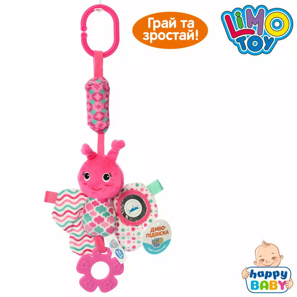 Підвіска на візок C08372BN метелик, дзеркало, брязкальце, прорізувач, плюш, 38-14-5см.