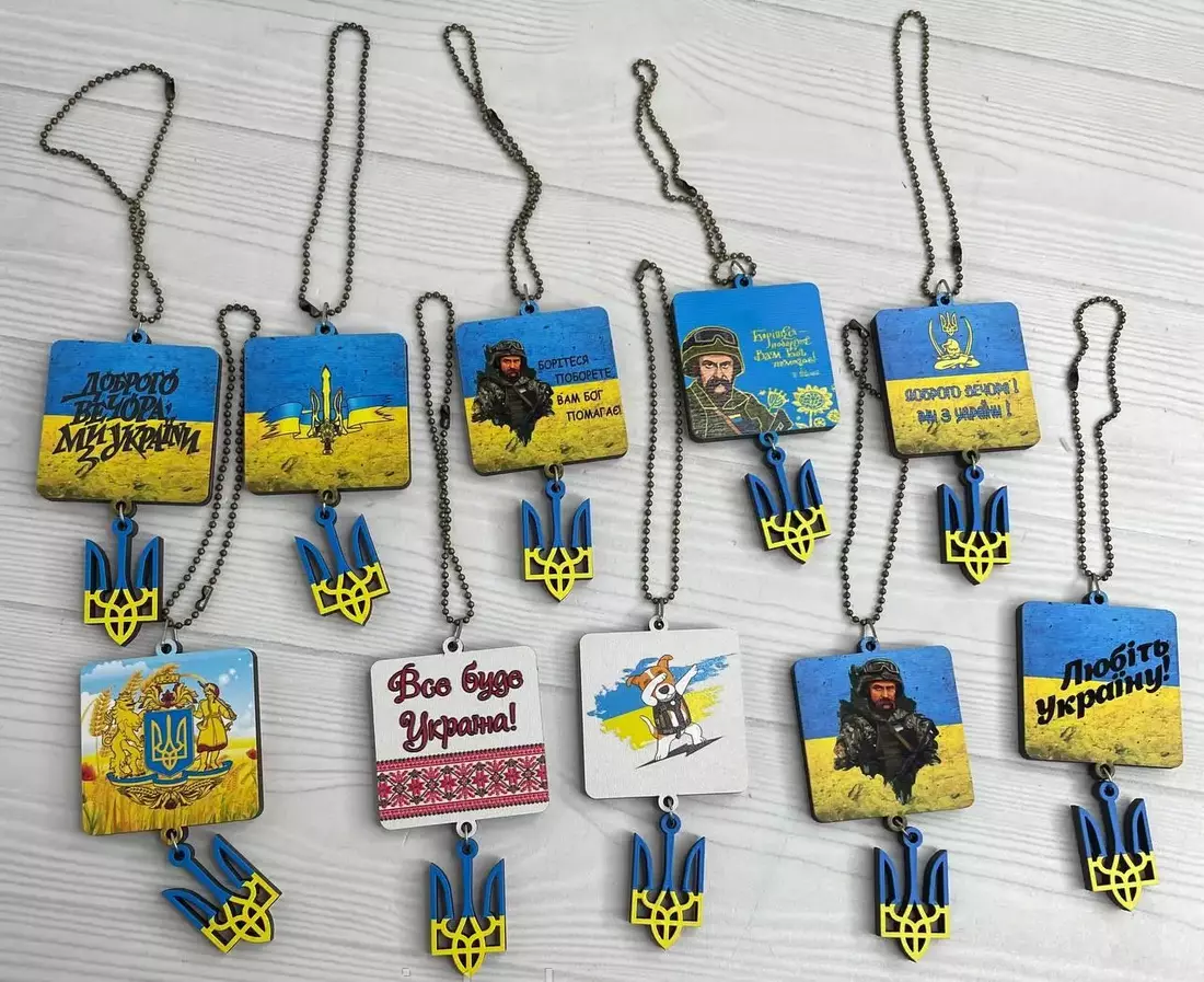 Україна у серці у кожного! Ми єдині, ми сильні, ми вистоємо! У цей нелегкий час важливо вірити та любити свою землю! Патріотична підвіска на дзеркало машини. Двостороння підвіска в авто. Виконана з дерева МДФ+ УФ-принт. Підвіска 11 см., довжина всієї підвіски з ланцюжком 23 см