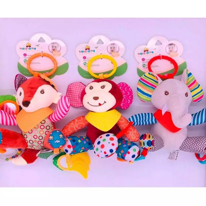 Підвіска YR9196 на візок, тварина, прорізувач, брязкальце, шарудить, плюш, 3 види, 17-20-9 см.