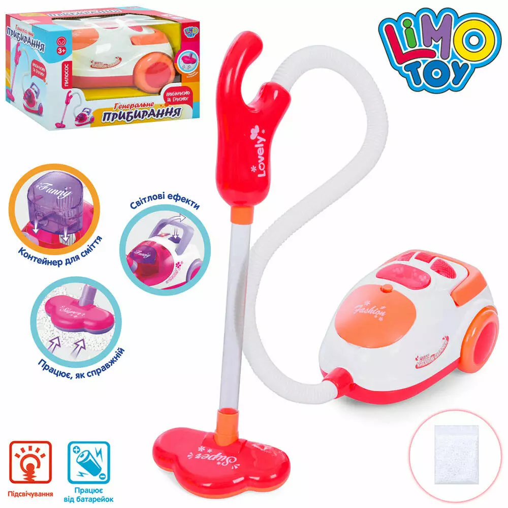 Пилосос 8018 пенопластові кульки, шланг+трубка, муз., світло, бат., кор., 24,5-15,5-14,5 см.