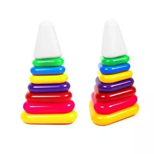 Найперша іграшка, яка просто повинна бути у кожного малюка - це пірамідка. Саме вона допоможе розвитку дрібної та великої моторики, а також сприяє формуванню логічного мислення і тренуванні пам'яті. Пірамідка складається з 8 різнокольорових пластмасових трикутників, які одягаються на основу. Пірамідка допомагає дітям формувати навички розпізнавання кольору, розміру і форм.