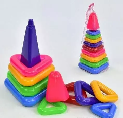 Різнобарвна піраміда являє собою основу, на яку потрібно насаджувати різні за формою кільця, причому робити це потрібно в певному порядку. Найбільші елементи повинні бути розташовані ближче до основи, а маленькі, навпаки - вгорі. В результаті, виходить красива пірамідка, якій буде рада будь-яка дитина. За допомогою такої іграшки малюк навчиться визначати кольори та форми предметів, розвине в собі дрібну моторику рук, мислення, пам'ять, увагу.