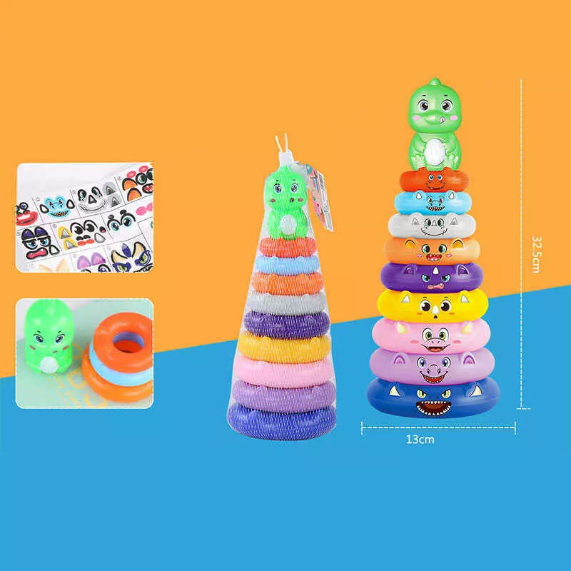Пірамідка HJ 062 (100/2) ""Динозавр"", 8 кілець, висота 28 см, наліпки, в сітці