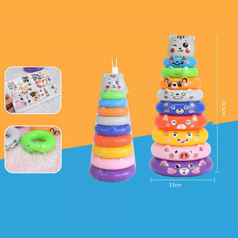 Пірамідка HJ 064 (120/2) ""Котик"", 8 кілець, висота 28 см, наліпки, в сітці