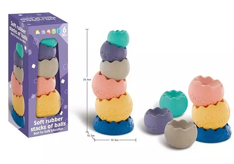 Надзвичайно новий формат пірамідки 1049 з гумовою рельєфною фактурою стане розвиваючим і найулюбленішим ігровим посібником для малюків віком від 6-ти місяців! Особливості: - чудова колірна гама; - на кожному елементі зображені різні малюнки, цифри та літери англійського алфавіту; - при стисканні іграшки видають кумедний звук; - пірамідка складається з шести гумових елементів різного діаметра та кольору. Всі деталі пірамідки мають ергономічну форму та зручні для утримання маленькими ручками малюка. За допомогою даної розвиваючої іграшки Ваша дитина розвине координацію рухів, сприйняття кольорів, отримає нові знання, а також покращить тактильні відчуття.