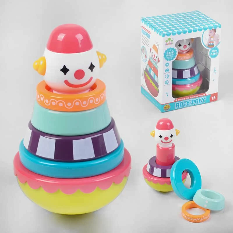 Пірамідка SL 83019 (36/2) ""Клоун"", неваляшка, 4 кільця брязкальця, в коробці