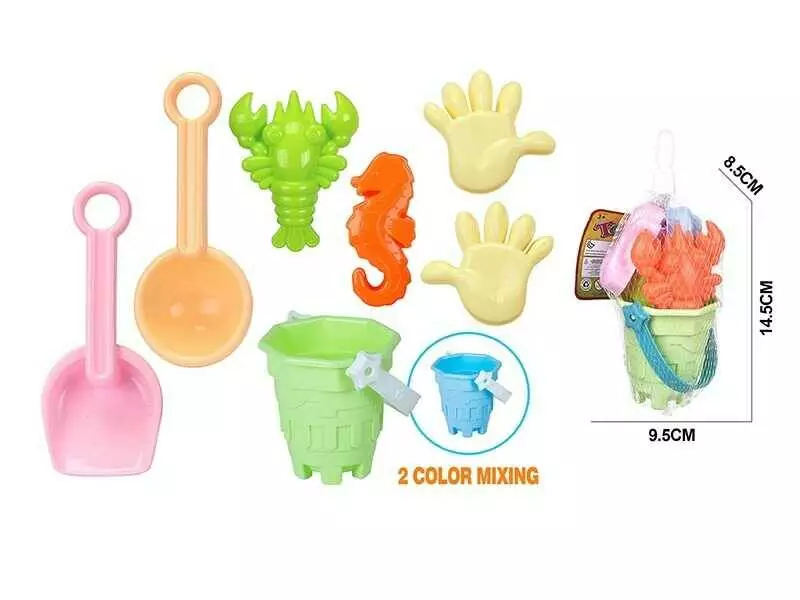 Пісочний набір XT 007-2 (330/2) 7 елементів, форми, лопатки, відерця, в сітці