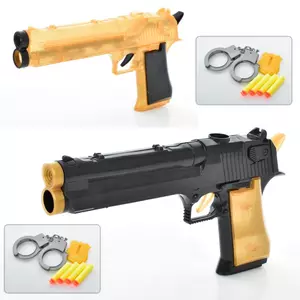 Іграшковий Пістолет 24см, наручники, м'які кулі-присоски 4шт. Пістолет з м'якими кулями – безпечний набір для сюжетних ігор на вулиці чи в приміщенні. З такою іграшкою дитина зможе придумати багато нових сюжетів для гри та весело провести час.
