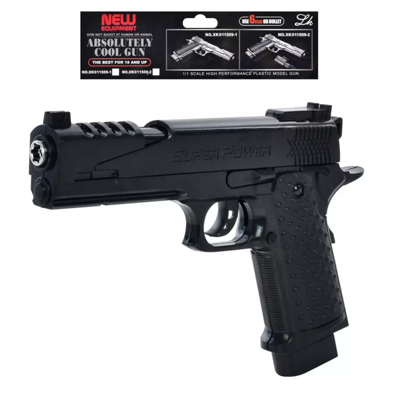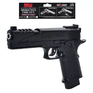 Пістолет ігровий 509-1 — це яскрава та стильна іграшкова зброя. Виготовлений пістолет із пластику. Дитина зможе використовувати дитячу зброю для активних ігор у компанії, а також грати й сама, тренуючись у стрільбі по мішені. Характеристики: Тип боєприпасів: кульки Вік: від 3 років Матеріал: пластик Розмір: 22 см Розмір упаковки: 30х18х3 см Паковання: пакет Колір: чорний