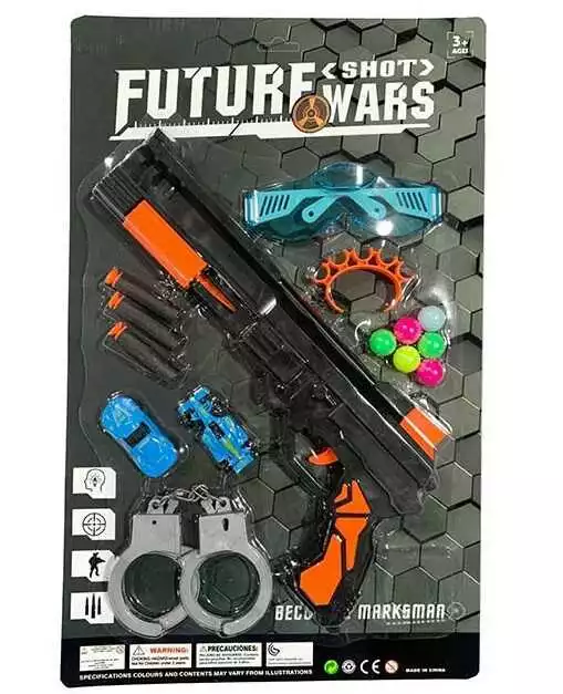 Пістолет 668 H/I/G (120/2) пульки, м’які патрони з присоскою, окуляри, машинки, наручники, на листі, ВИДАЄТЬСЯ МІКС ВИДІВ