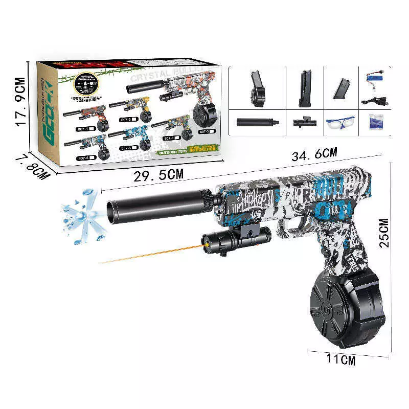 Пістолет 807-5 (24) оптичний приціл, лазер, 2 режими, глушник, орбізи, 3 магазини, від акумулятору 7.4 V, окуляри, в коробці