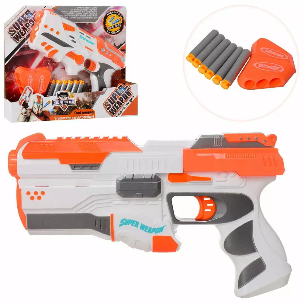 Пістолет 921AB м'які кулі-присоски, 6 шт., обійма, 2 види, кор., 32-26-5 см.