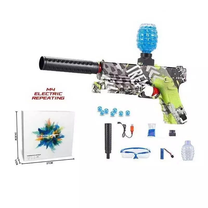 Пістолет G 910-1 (32) стріляє м’якими патронами, орбізами, від акумулятора 3.7 V, 5 м’яких патронів, глушник, окуляри, в коробці