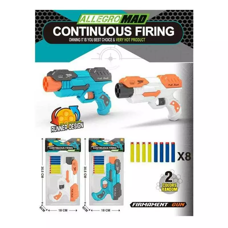 Пістолет JM 110-66 (180/2) 2 кольори, 8 м'яких снарядів, у пакеті