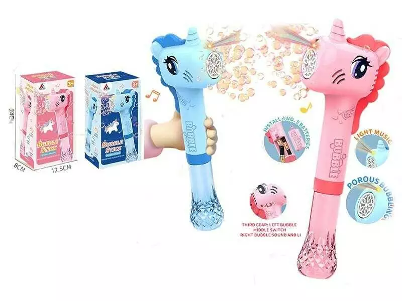 Пістолет з мильними бульбашками 8587 B (48) 2 кольори, підсвічування, музика, пляшечка з мильним розчином, автоматичний, в коробці