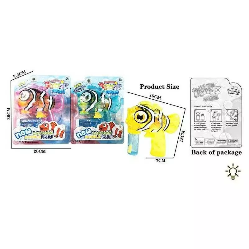 Пістолет з мильними бульбашками JNH 806 (96/2) 3 види, “Рибка”, механічний, пляшечка з розчином, підсвічування, на листі, ВИДАЄТЬСЯ ТІЛЬКИ МІКС ВИДІВ