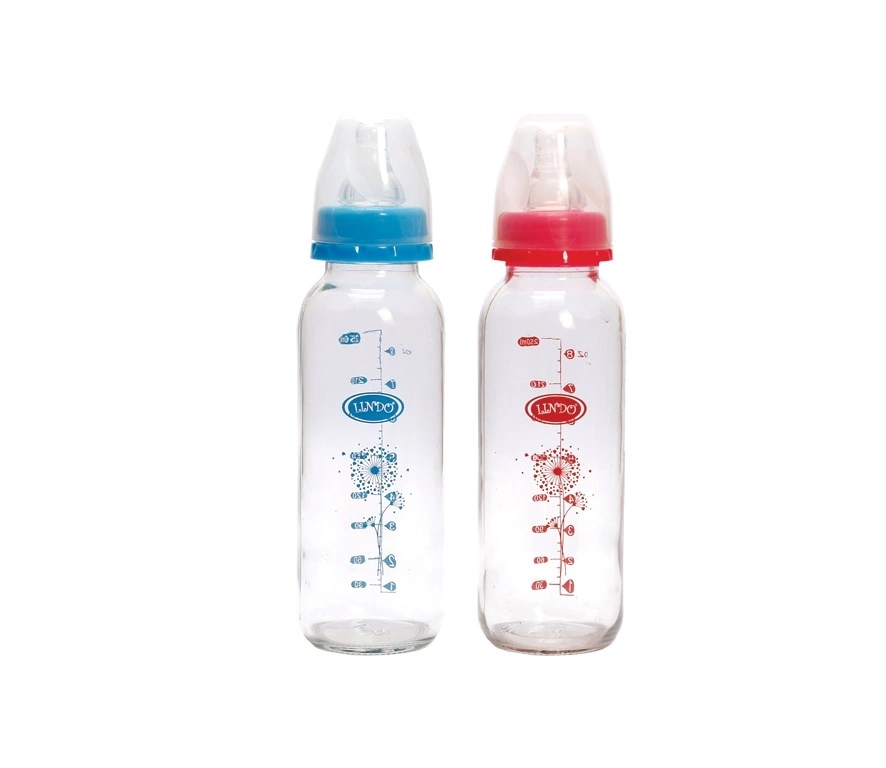 Скляна пляшка для годування Lindo з силіконовою соскою з антіколіковую клапаном. Вік: з народження Матеріал пляшечки: скло Обсяг пляшечки: 250 мл Особливості: захисний ковпачок Шийка: стандартне Матеріал соски: силікон