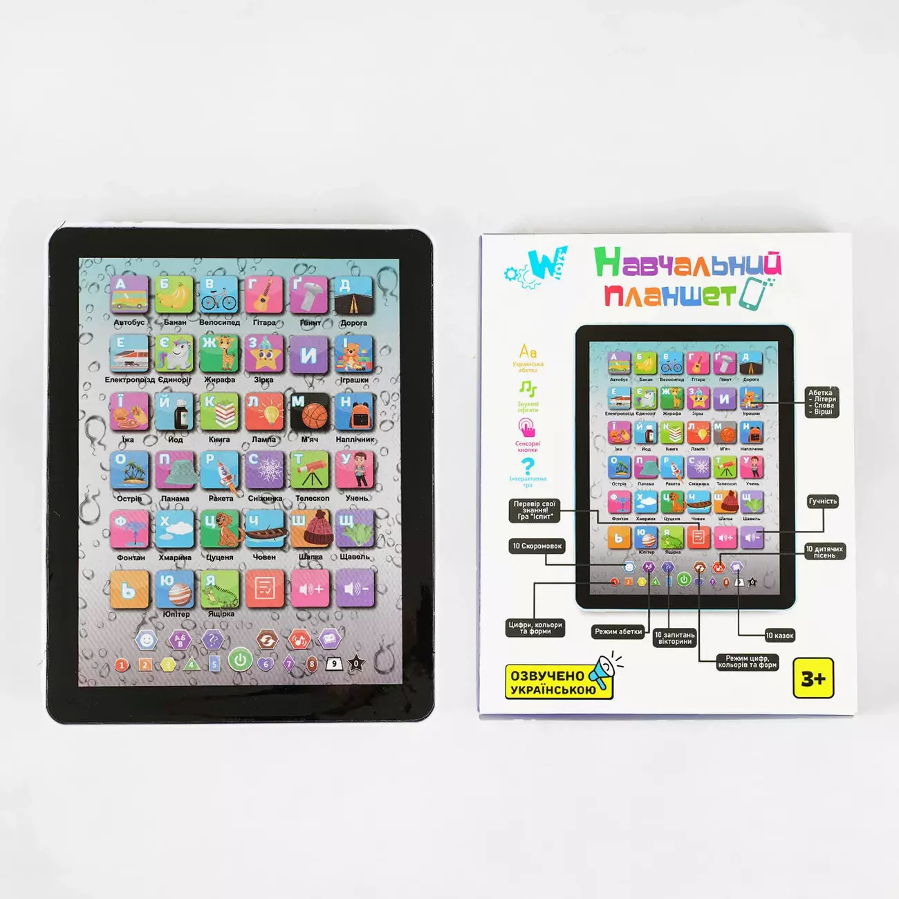 Планшет з абеткою TK 00921 (60) "WToys", ОЗВУЧУВАННЯ УКРАЇНСЬКОЮ МОВОЮ, абетка, слова, вірші, загадки, казки, пісні, скоромовки, у коробці