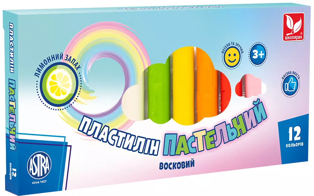 Пластилін круглий восковий пастельні кольори із запахом лимона 12 кольорів