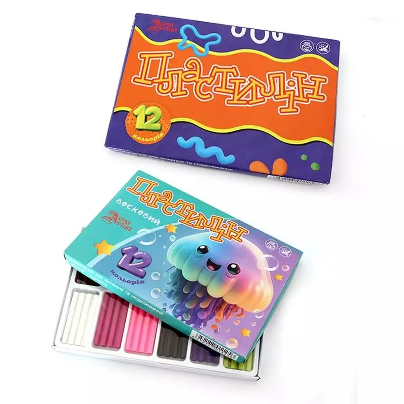 Пластилін восковий, 12 кольорів, зі стеком, 240гр, Little Artist