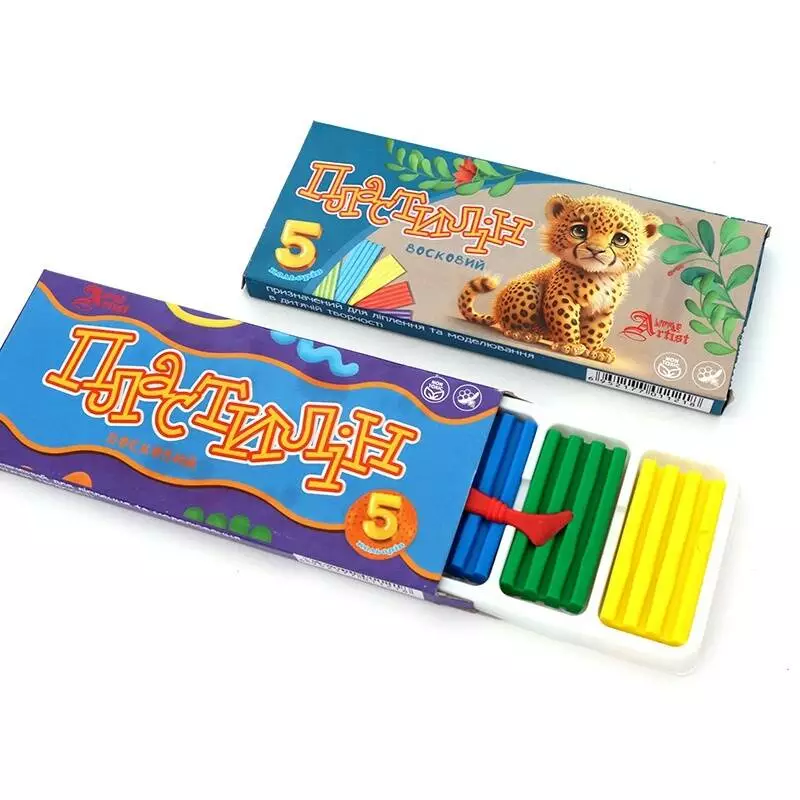 Пластилін восковий, 5 кольорів, зі стеком, 100гр, Little Artist