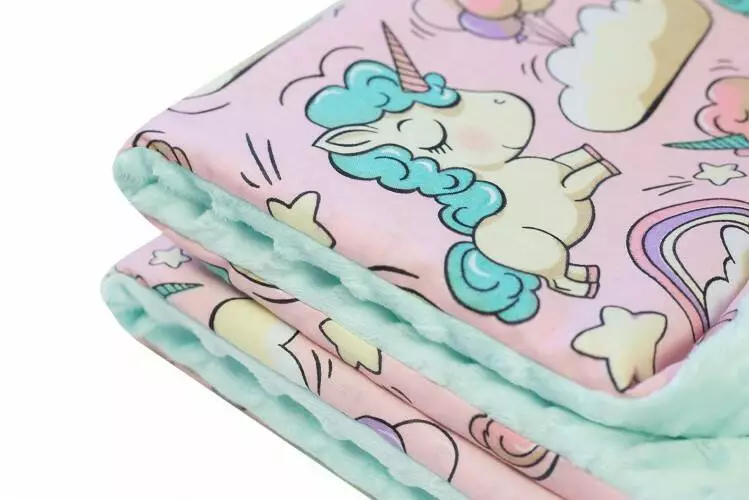 Плед детский плюшевый minky Единороги Мятный 100х150 см.