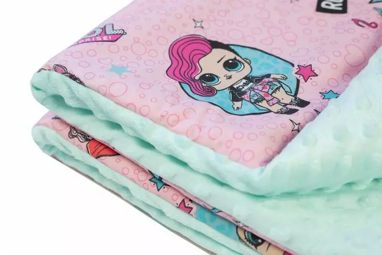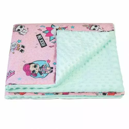 Плед детский плюшевый minky Куклы Мятный 100х150 см.