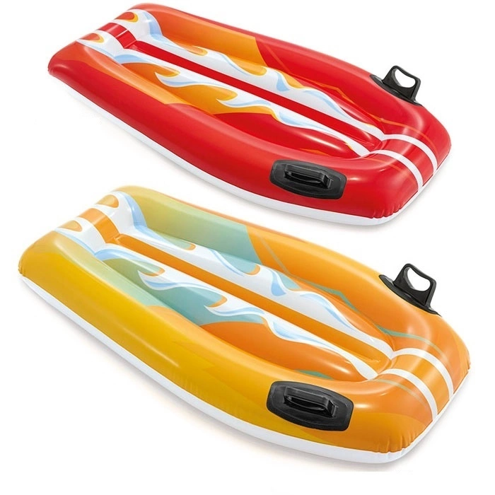 Розміри: 112х62 см. Товщина стінок: 0.25 мм Вага в упаковці: 0,490 кг. Надувний дитячий пліт Intex Joy Rider 58165 виготовлений з високоміцного вінілу. Є два варіанти забарвлення. Плотик складається з двох незалежних повітряних камер. Для безпечного плавання на плоті передбачені дві ручки, щоб триматися.