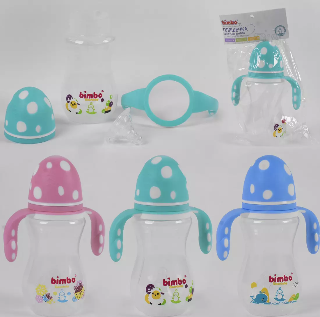 Поліпропіленова пляшечка для годування з силіконовою соскою від виробника TM Bimbo. Пляшка виготовлена з високоякісних і безпечних матеріалів: поліпропілен і силікон, вона повністю відповідає основним санітарним нормам і ретельно проходить регулярний контроль якості. Пляшка виготовлена із стійкого до пошкоджень матеріалу, який не вступає в хімічну реакцію з молоком і не виділяє шкідливих речовин при нагріванні і стерилізації. Дизайн поєднує в собі комфорт і зручність. Знімні ручки, з боків, дозволять малюкові самостійно тримати пляшечку. Соска виготовлена із силікону. Баночка оснащена шкалою для вимірювання об'єму. Обсяг пляшечки - 330 мл.