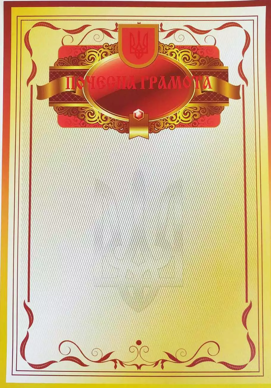 Почесна грамота А-4, 250 г / м2, тиснення фольгою, матовий крейдований папір
