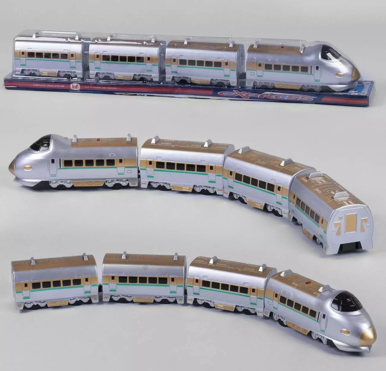 Кожен хлопчисько був би радий отримати в подарунок реалістичну модель поїзда. Поїзд з трьома вагончиками буде жваво пересуватися по кімнаті дитини. Оснащений звуковими ефектами (звук їзди / сигнал), а також вміє об'їжджати перешкоди. Працює від 4-х батарейок типу «АА» 1.5V (не входять комплект).