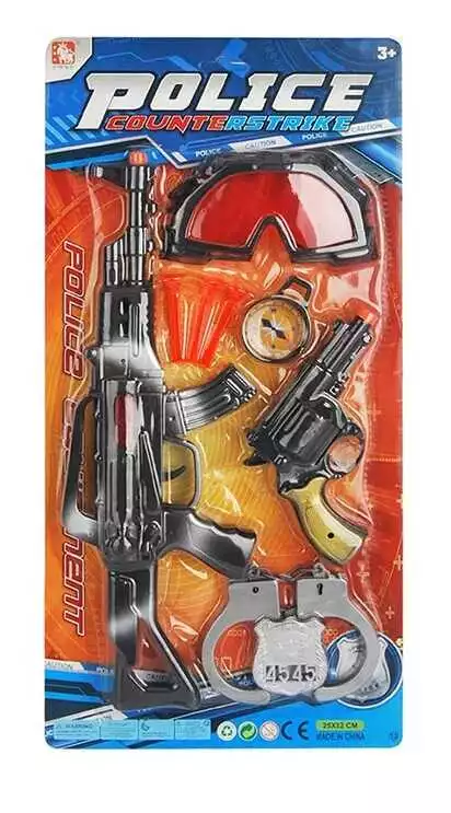 Поліцейський набір 13-8 (60/2) автомат, пістолет, захисні окуляри, наручники, компас, жетон, патрони з присосками, на листі