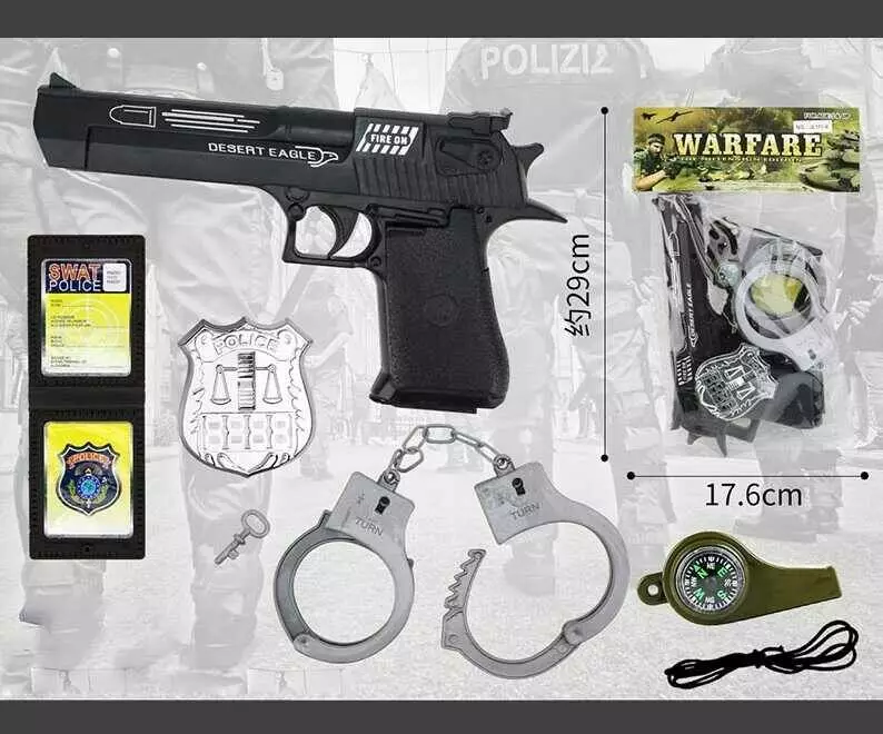 Поліцейський набір JL 111-8 (144/2) пістолет, наручники, жетон, свисток, у пакеті