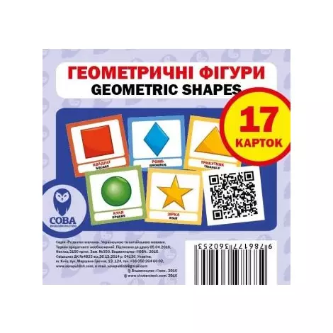 Набір карток Геометричні фігури англо-український 17 карток буде барвистим і найкращим вибором для подарунка вашій маленькій дитині і його розвитку. З такими барвистими картками, малюк познайомиться з багатьма різними фігурами, які так часто зустрічаються в нашому житті. Дивлячись на картки, ви помітите на одній стороні барвисту обкладинку, а на другій стороні намальовану фігуру з підписом і перекладом на англійську. Граючи з нею, ваш малюк отримає незабутні подорожі в світ фігур. При навчальній грі з батьками, дитина з легкістю зможе налагодити з ними відносини. Зроблені картки з якісно підібраних матеріалів, які не викличуть алергії в організмі вашої дитини. Вони допоможуть розвинути в дитині особистісний характер, логічне мислення, фантазію, дрібну моторику рук і комунікативні здібності. Такий набір карток не буде зайвим для вашої дитини і його подальшого розвитку. Тип іграшки: Картки навчальні. Матеріал: Картон. Картки Домана: Англійські, Українські.