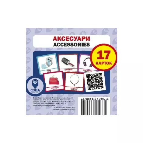 Набір карток Аксесуари англо-український - один із найпопулярніших видів навчальних карток у нашому магазині. Подарувавши таку колоду карт, ваша дитина з легкістю зможе вивчити безліч назв аксесуарів, які є в кожному будинку, не тільки українською, а й англійською мовою. При навчанні з батьками у дитини зможуть налагодитися з ними добрі взаємини, що дуже важливо. Достатньо просто дістати будь-яку з карток і показати дитині, при цьому назвати предмет різними мовами. Під час гри з картками розвивається візуальна пам'ять, логічне мислення, комунікативні здібності. Картки виготовлені з добре підібраних та якісних матеріалів. Лак, яким покриті картки є не токсичним. Інші види розвиваючих карток або іграшок ви зможете знайти у нас в магазині. Тип іграшки: Картки навчальні Матеріал: Картон. Картки Домана: Маленькі (10х10см), Англійські, Українські.
