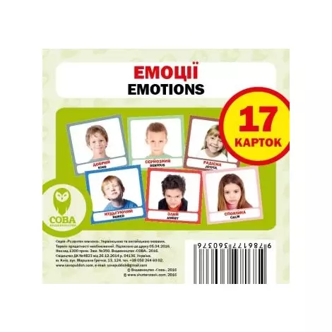 Набір карток Емоції англо-українська буде не просто іграшкою вашої дитини, а її справжнім учителем, який закладе початкові візуальні дані про іноземні літери, а згодом і основи побудови слів та речень англійською мовою, так сильно поширеною в наш час, і знання якої точно стане в нагоді вашій дитині в будь-якій майбутній її роботі. Він виконаний з м'якого, приємного на дотик, нетоксичного (безпечного при попаданні в рот та ковтанні) текстильного матеріалу. Барвистий дизайн карток, який точно зацікавить вашу дитину і подарує йому і вам безліч годин захоплюючої і розвиваючої гри, яку він зможе розділити не тільки з батьками, але і його друзями. Вони допоможуть розвинути у дитині особистісний характер, логічне мислення, фантазію, дрібну моторику рук та комунікативні здібності. Такий набір карток не буде зайвим для вашої дитини та її подальшого розвитку. Тип іграшки: Картки навчальні. Матеріал: Картон. Картки Домана: Маленькі (10х10см), Українські, Англійські.