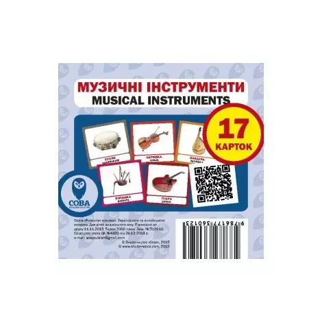 Набір карток Музичні інструменти англо-український дуже корисна річ для навчання дітей. Батьки часто піклуються про розвиток своєї дитини і купують їм розвиваючі іграшки. Такі картки не будуть для них винятком. Подарувавши таку колоду карт, ваша дитина з легкістю зможе вивчити безліч музичних інструментів не тільки на українській, а й англійською мовами. При навчанні з батьками у дитини зможуть налагодиться з ними хороші стосунки, що дуже важливо. Досить просто дістати будь-яку з карток і показати дитині, при цьому назвати предмет на різних мовах. При грі з картками розвивається візуальна пам'ять, логічне мислення, комунікативні здібності. Картки виготовлені з добре підібраних і якісних матеріалів. Лак, яким картки покриті є не токсичним. Інші види розвиваючих карток або іграшок для ви зможете знайти у нас в магазині. Тип іграшки: Картки навчальні. Матеріал: Картон. Картки Домана: Маленькі (10х10см), Англійські, Українські.