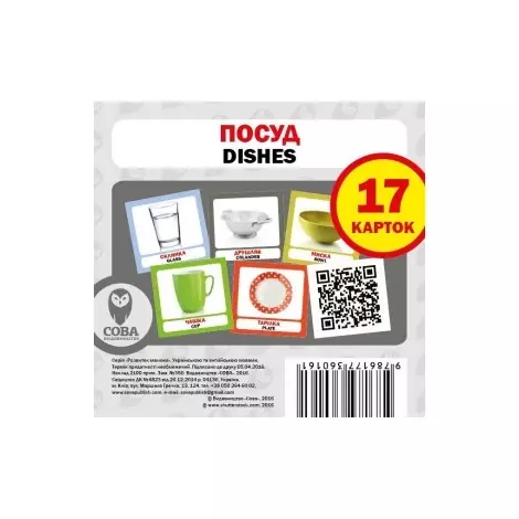 Набір карток Посуд англо-український стане хорошим учителем в житті вашої дитини не тільки української, а й, англійської. Знання назв посуду дуже стане в нагоді для побутового життя не тільки у себе вдома, а й, якщо дитина захоче в майбутньому з'їздити пожити за кордоном своєї країни. Купивши таку колоду карт, ваша дитина з легкістю зможе вивчити безліч квітів не тільки на українській, а й англійською мовами. При навчанні з батьками у дитини зможуть налагодиться з ними хороші стосунки, що дуже важливо. Досить просто дістати будь-яку з карток і показати дитині, при цьому назвати вид посуду будь-якою мовою. При грі з картками розвивається візуальна пам'ять, логічне мислення, комунікативні здібності Картки виготовлені з добре підібраних і якісних матеріалів. Лак, яким картки покриті є не токсичним. Купивши таку колоду карт, ви безумовно зробите гри і навчання дитини набагато цікавіше. Тип іграшки: Картки навчальні. Матеріал: Картон. Картки Домана: Маленькі (10х10см), Англійські, Українські.