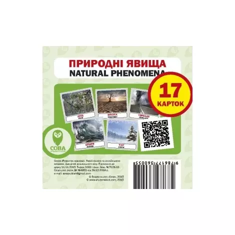 Набір карток Природні явища англо-українська стане найулюбленішою навчальною іграшкою для дитини. З такими барвистими картками малюк познайомиться з багатьма явищами на землі, які можна зустріти в будь-якому місці світу. Навчання картками у наш час стає більш популярною та швидкою формою навчання для дітей. Візуальне запам'ятовування є найшвидшим. Граючи з нею, ваш малюк отримає незабутні подорожі у світ знань. Зроблено картки з якісно підібраних матеріалів, які не викличуть алергії в організмі вашої дитини. Вони допоможуть розвинути у дитині особистісний характер, логічне мислення, фантазію, дрібну моторику рук та комунікативні здібності. Такий набір карток не буде зайвим для вашої дитини та її подальшого розвитку. У коробці 17 карток. Тип іграшки: Картки навчальні. Матеріал: Картон. Картки Домана: Маленькі (10х10см), Українські, Англійські.