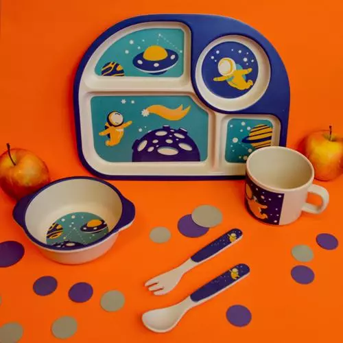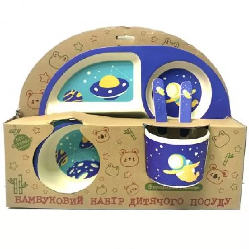 Посуд дитячий бамбук "Космос" 5пр/наб (2тарілки, виделка, ложка, чашка) MH-2773-14
