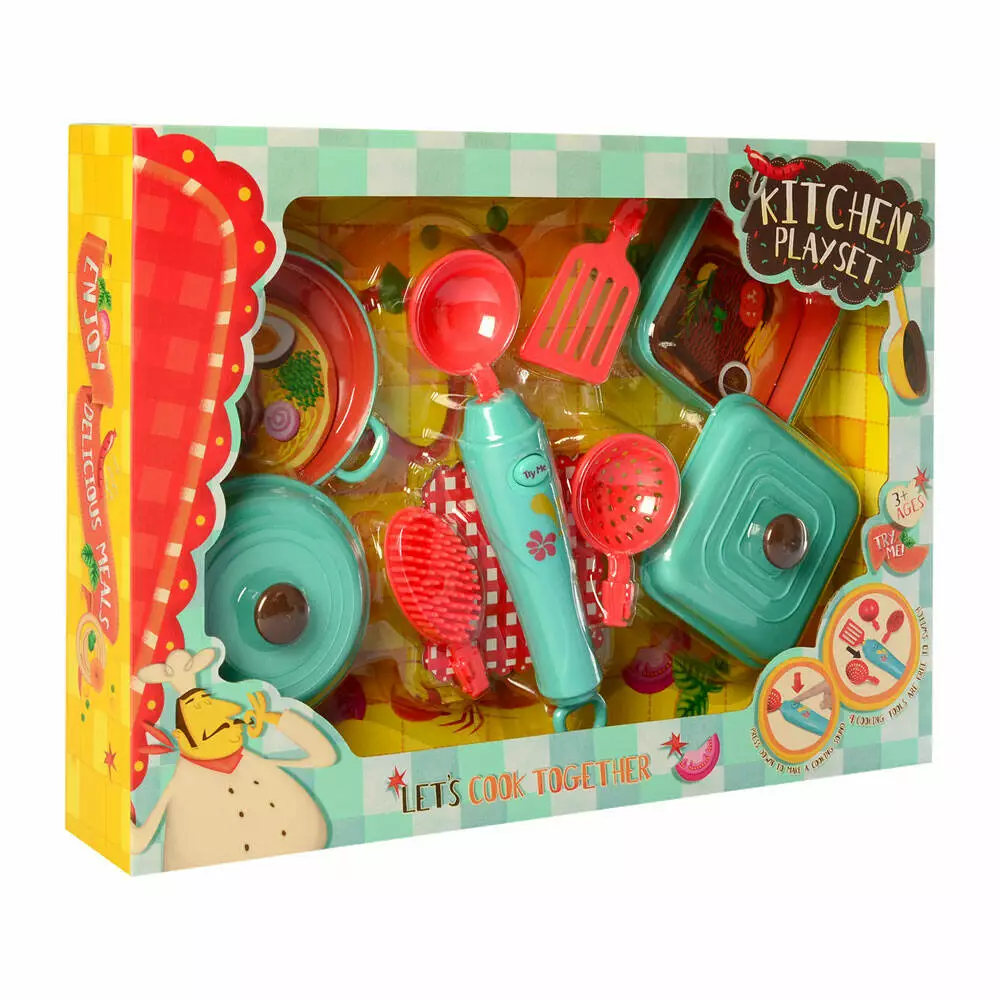 Посуд P8622 сковорідка, каструля, кухонне приладдя, ложка-муз., бат., кор., 46,5-32-7 см.
