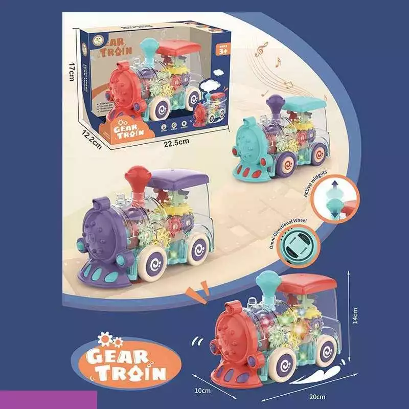 Потяг KL 1209 (60/2) 2 кольори, рухливі шестерні, колесо вільного ходу, світло, звук, на батарейках, в коробці