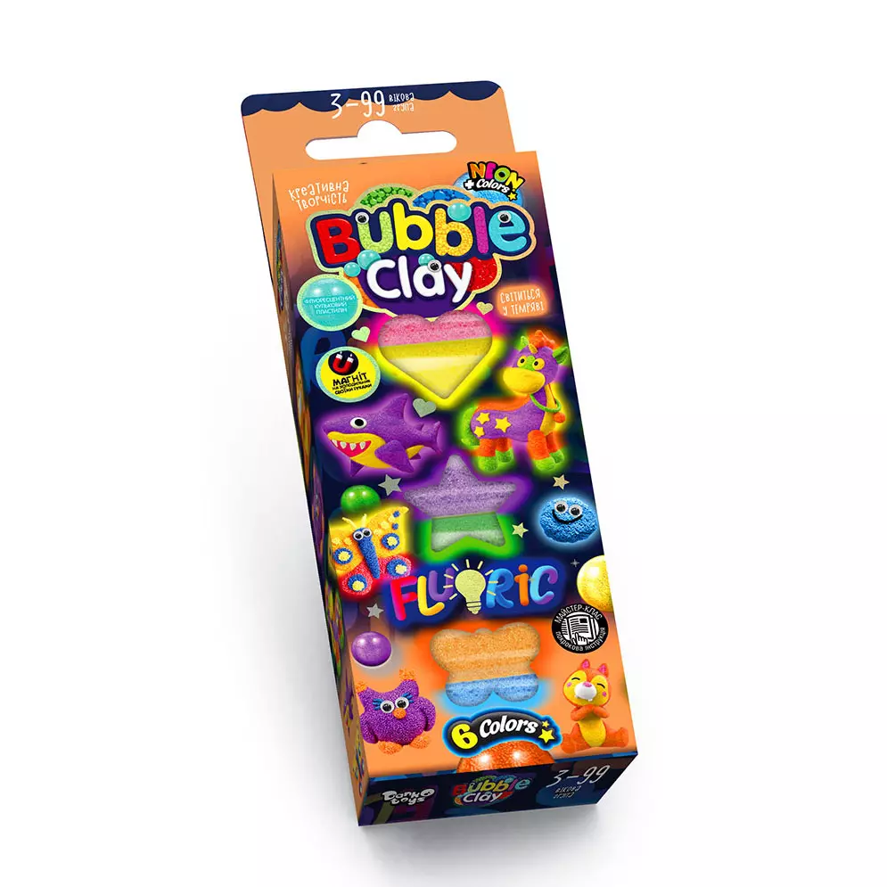 Повітряний пластилін "Bubble Clau Fluoric" BBC-FL-6-01U,02U УКР. (30) "Danko toys", 6 кольорів