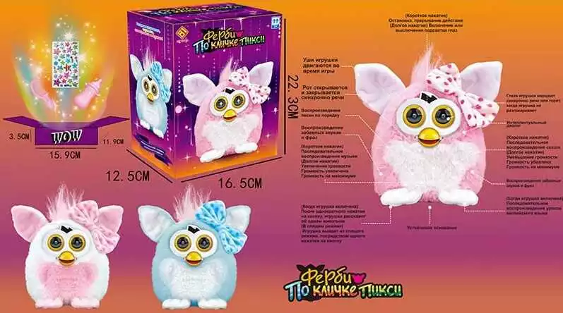 Повторюшка Фербі JD - 4891 (36/2) 2 кольори, казки російською мовою, відтворення пісень, казок, різних фраз та звуків, аксесуари, в коробці
