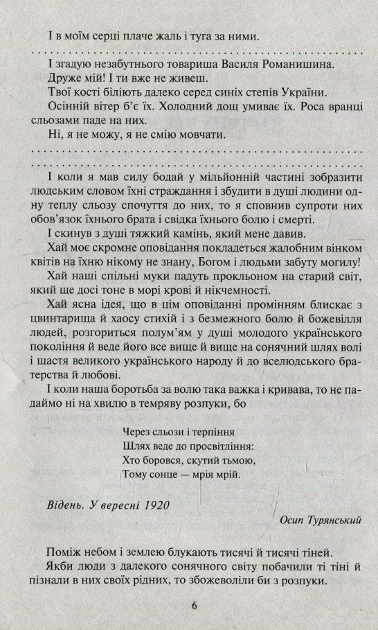 У своїй прозовій поемі «Поза межами болю» Остап Турянський нічого не вигадав. Перебуваючи у полоні під час Першої світової війни, йому довелося пережити надзвичайно тяжкі випробування, які і було покладено в основу цього твору.…Семеро полонених, які волею сліпого воєнного випадку опинилися у горах і один по одному вмирають від голоду, холоду і виснаження, виносять вирок тим, хто кинув людство у страшну війну. Автор виступає проти війни як переконаний демократ, не стає на бік якоїсь однієї держави, одного народу, а звинувачує тих, у кого в руках влада. «…Судилося нам пройти за життя пекло, яке кинуло нас поза межі людського болю…» – писав у спогадах сам автор.