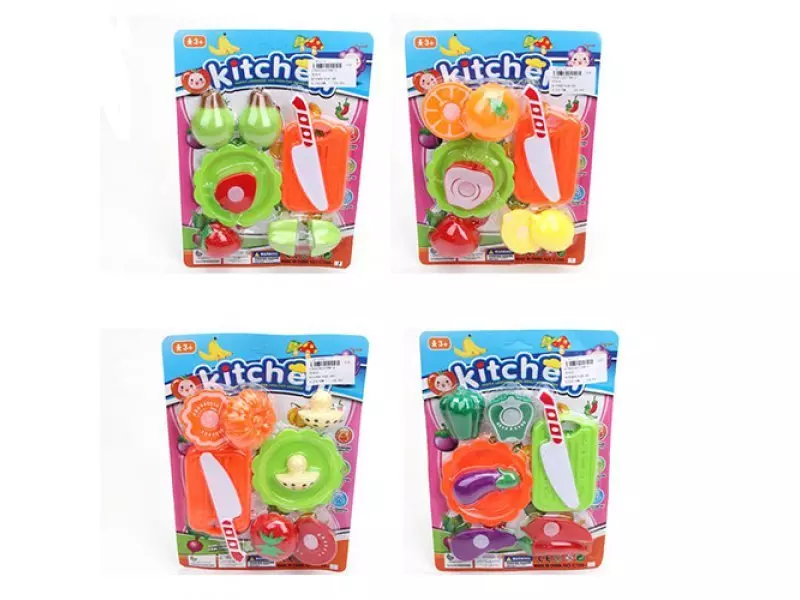 Продукти C788-1-2-3-4 (216шт) на липучці 3шт, овочі / фрукт, тарілка, ніж, досточ, 4 види, на аркуші, 21-28-3см